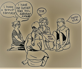 In dieser Runde legen die Frauen* Phantasien bezüglich anderer Frauen* in der Gruppe offen. Die betreffende Frau* bestätigt oder verneint diese.
